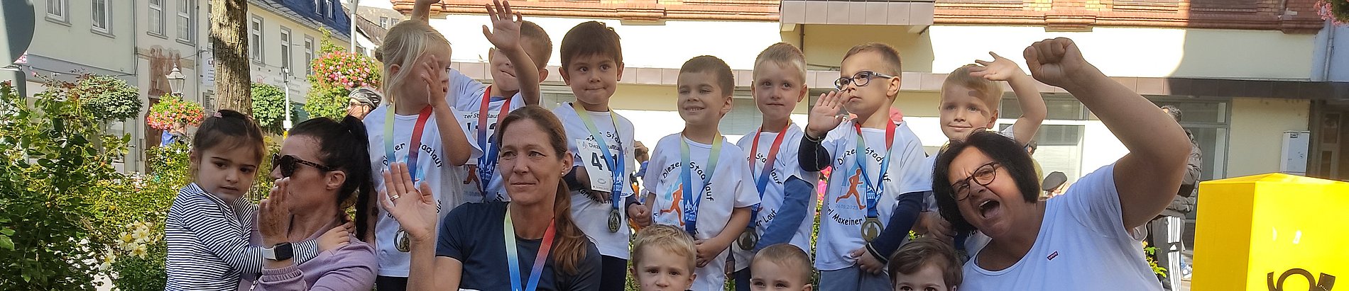 „Spaß an der Bewegung und ein Gemeinschaftsgefühl entwickeln, seien die Ziele dieser besonderen Aktion gewesen, ganz im Sinne des Bewegungs-Kita-Konzepts, erklärte Erzieherin Manuela Gerner-Swarowsky, die vor dem Start der Kleinsten schon bei den Erwachsenen mitlief. Ob langsam oder schnell, war hier egal, Hauptsache mitmachen lautete das Motto. Die letzten Meter entlang der Zielgeraden und durch den Zielbogen, liefen die meisten Kindergartenkinder, angefeuert durch die Zuschauer und stolz empfangen durch die Eltern, aber in schnellem Schritt. Und mit einem Lächeln im Gesicht.